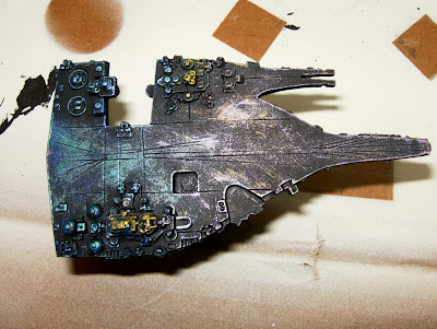 My Entomolian cruisers need something to escort, so I also painted an Ent carrier. It's pretty much the same method I used for the cruisers, but slightly different because of the large, flat surfaces on the larger ship.